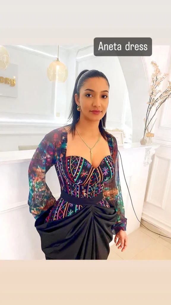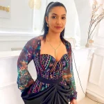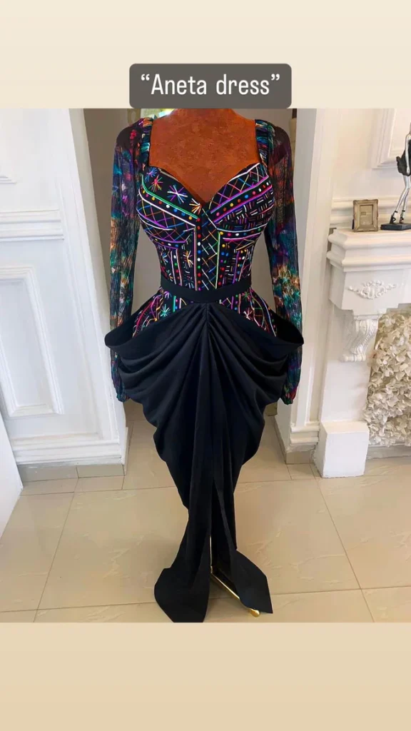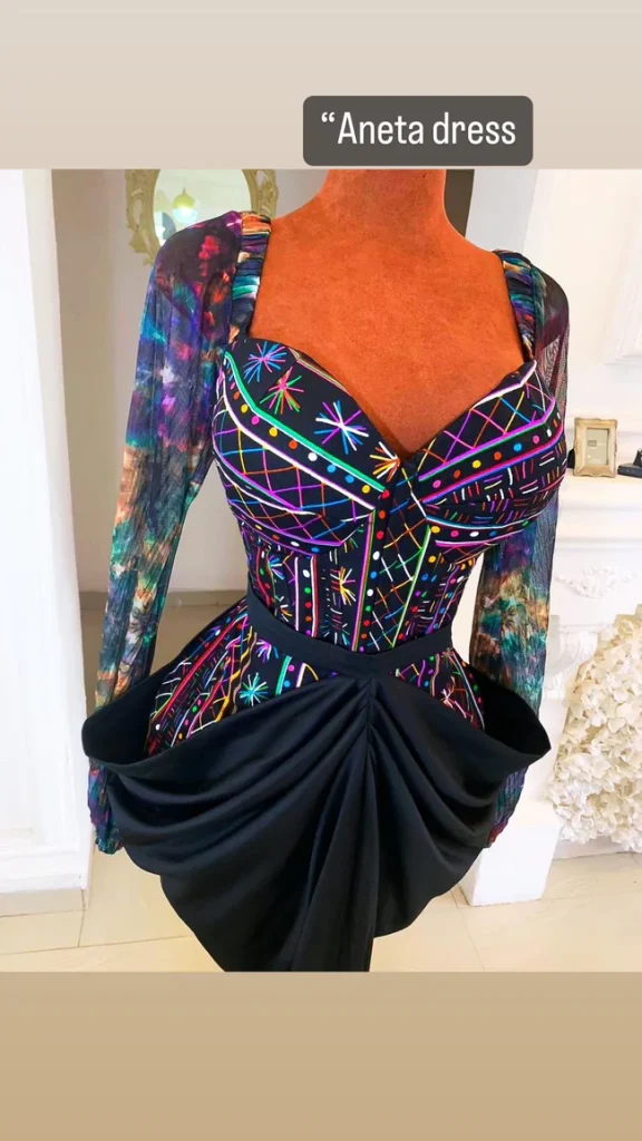 SLEEVELESS DOME SHAPED MINI DRESS WITH HAND EMBROIDERED FLORAL DETAIL